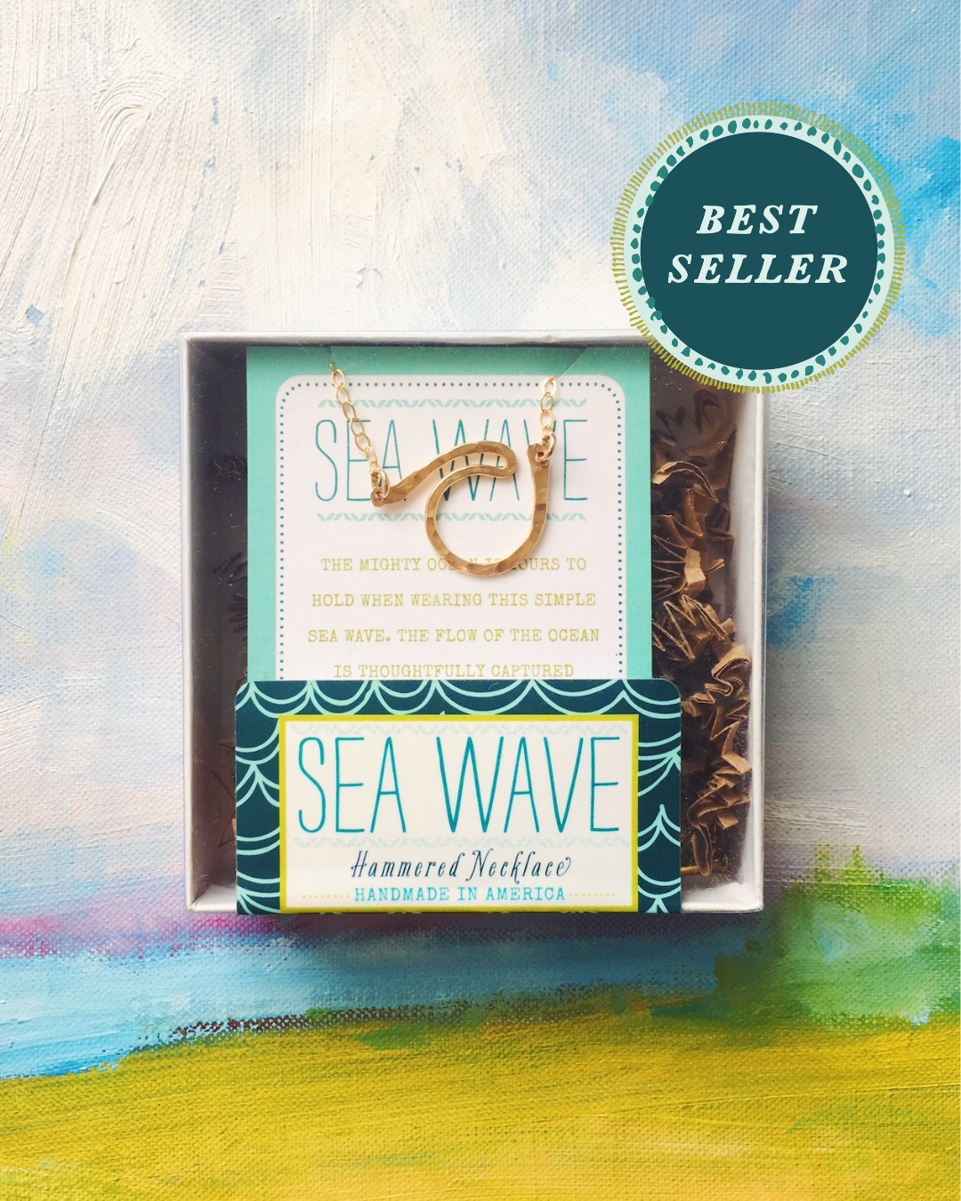 All of our jewelry is handcrafted from start to finish in our coastal Rhode Island studio. These "Sea Wave" necklaces are formed, hammered and finished with the upmost care making each piece one of a kind-just like the waves that inspire them.