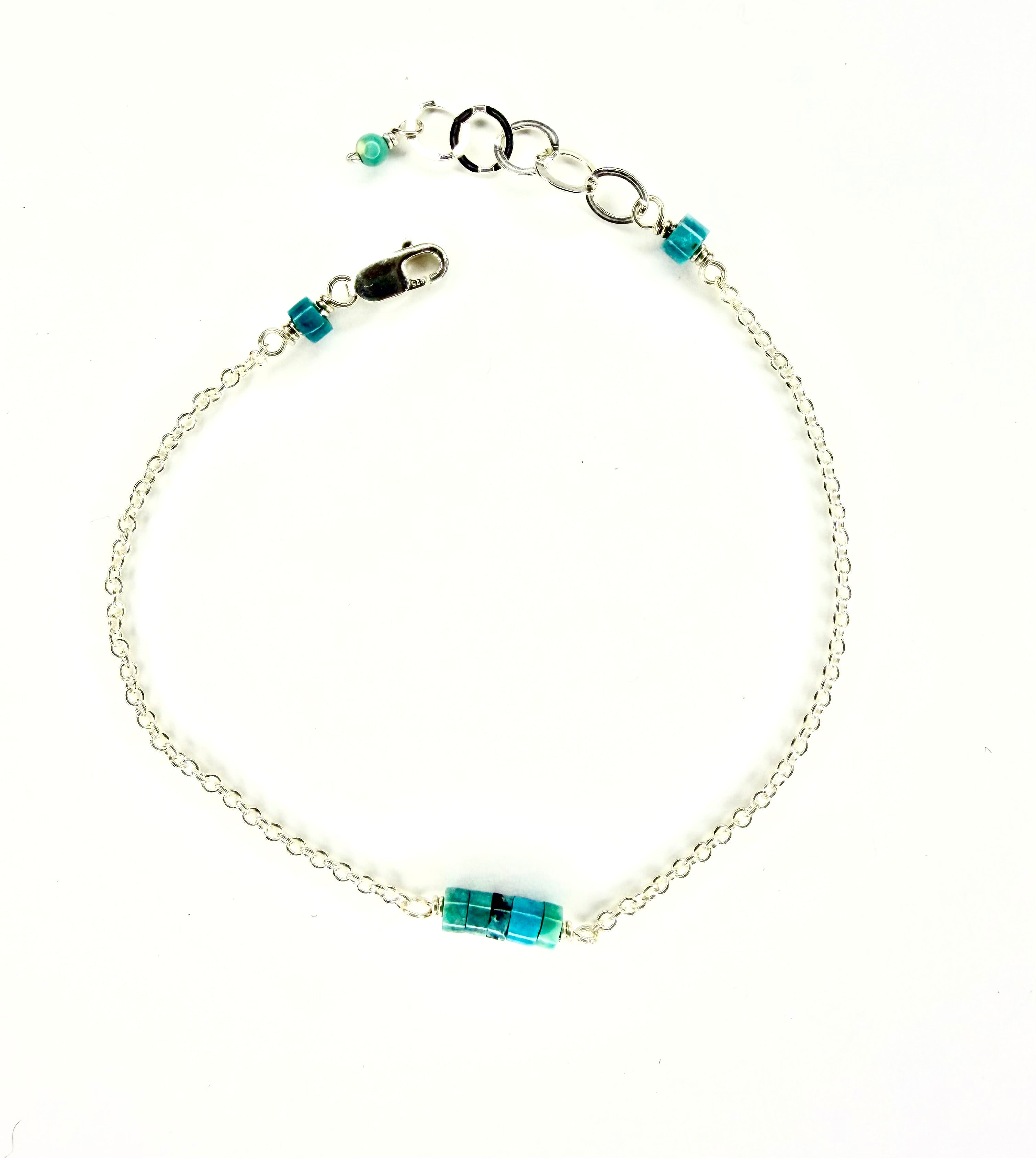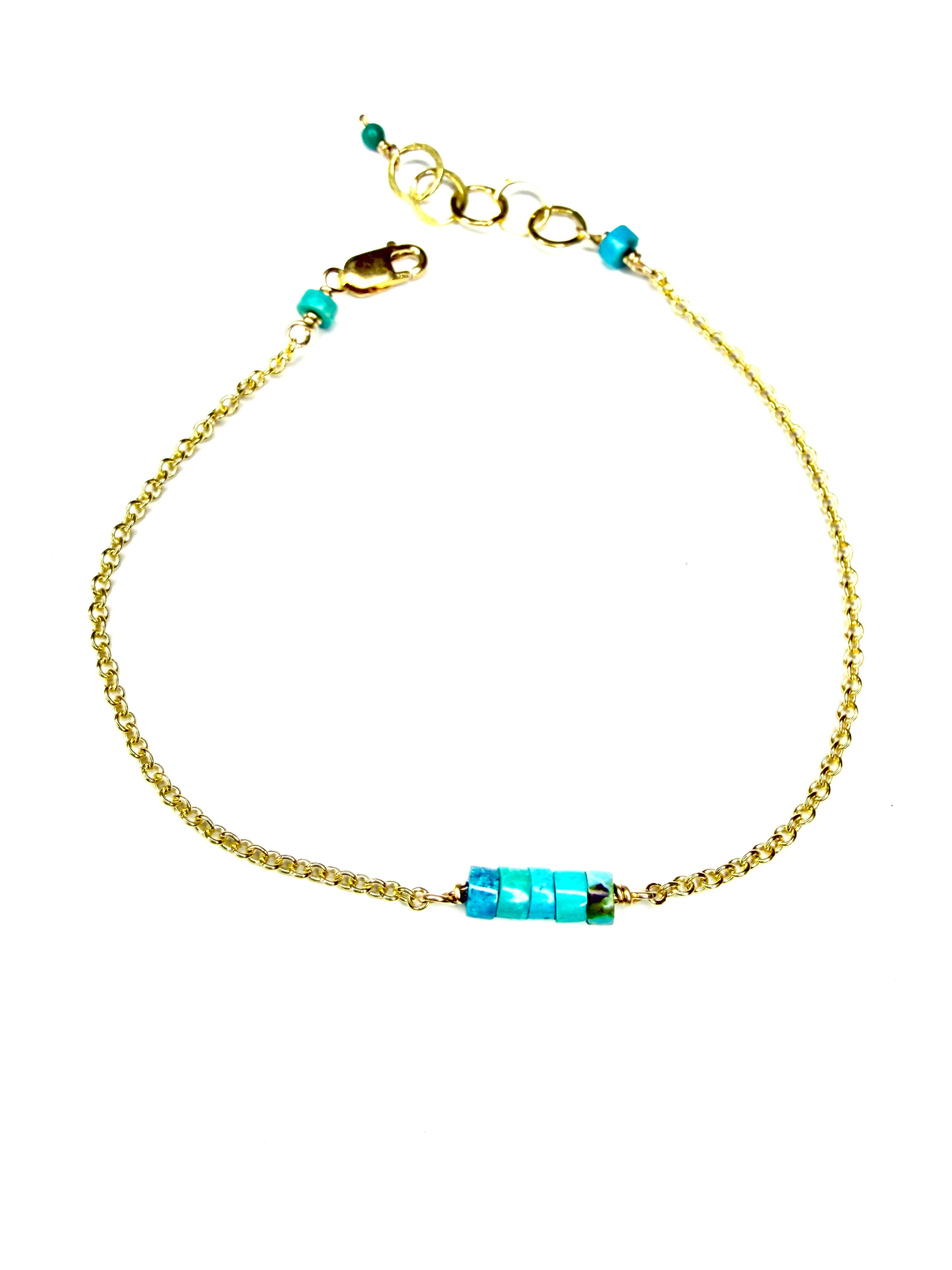simple turquoise disc bracelet. available in sterling silver or 14k gold fill