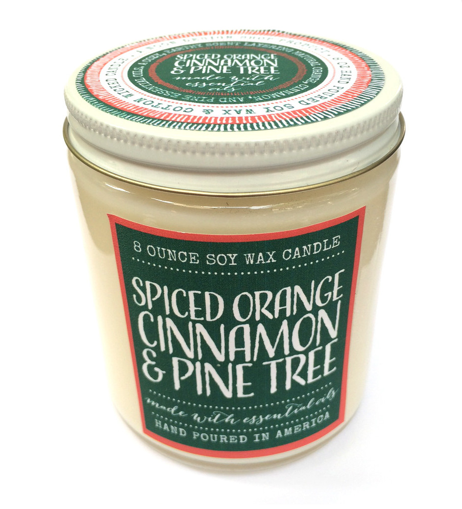 seasonal soy wax candle . spice orange, cinnamon + pine tree