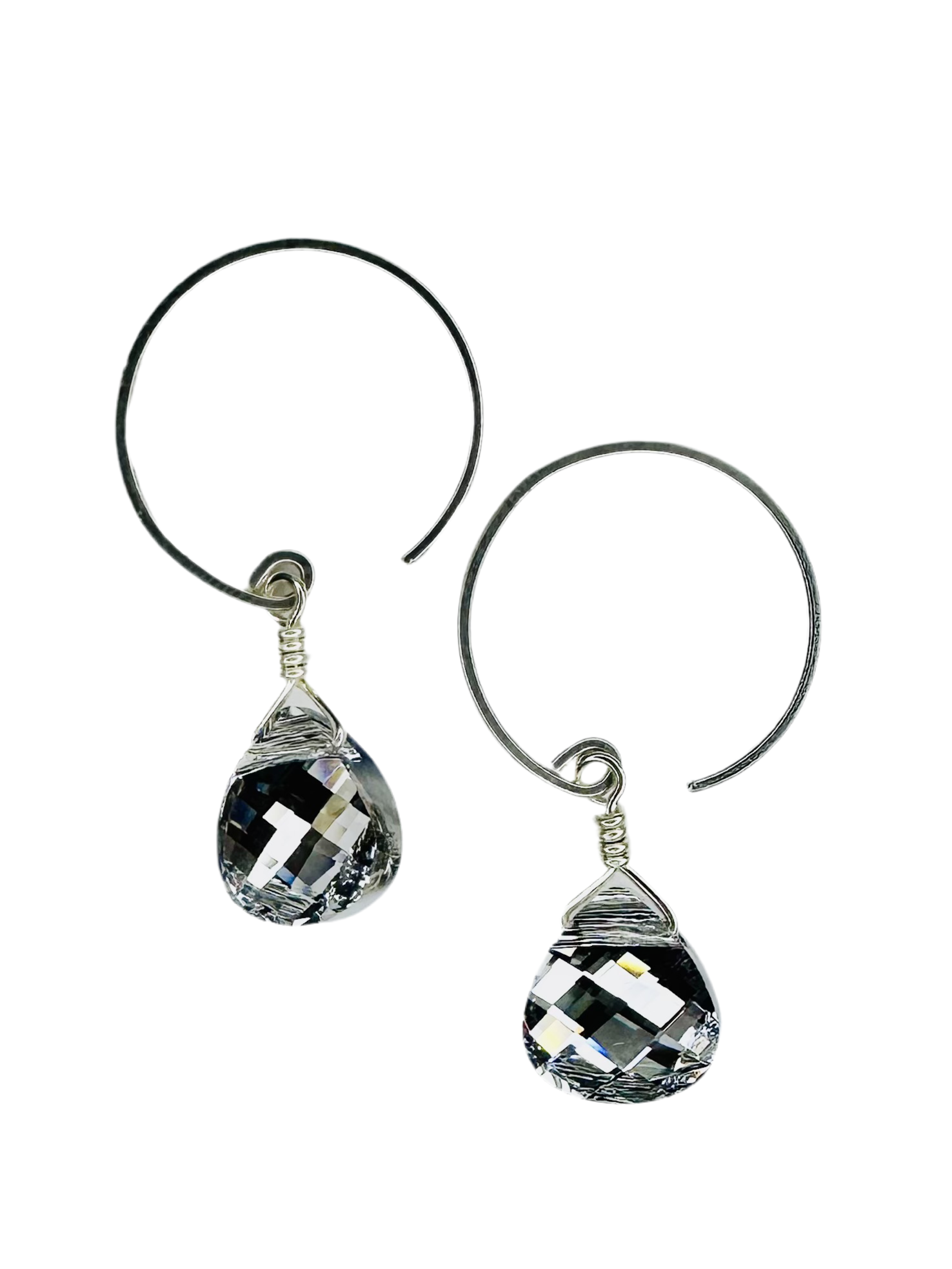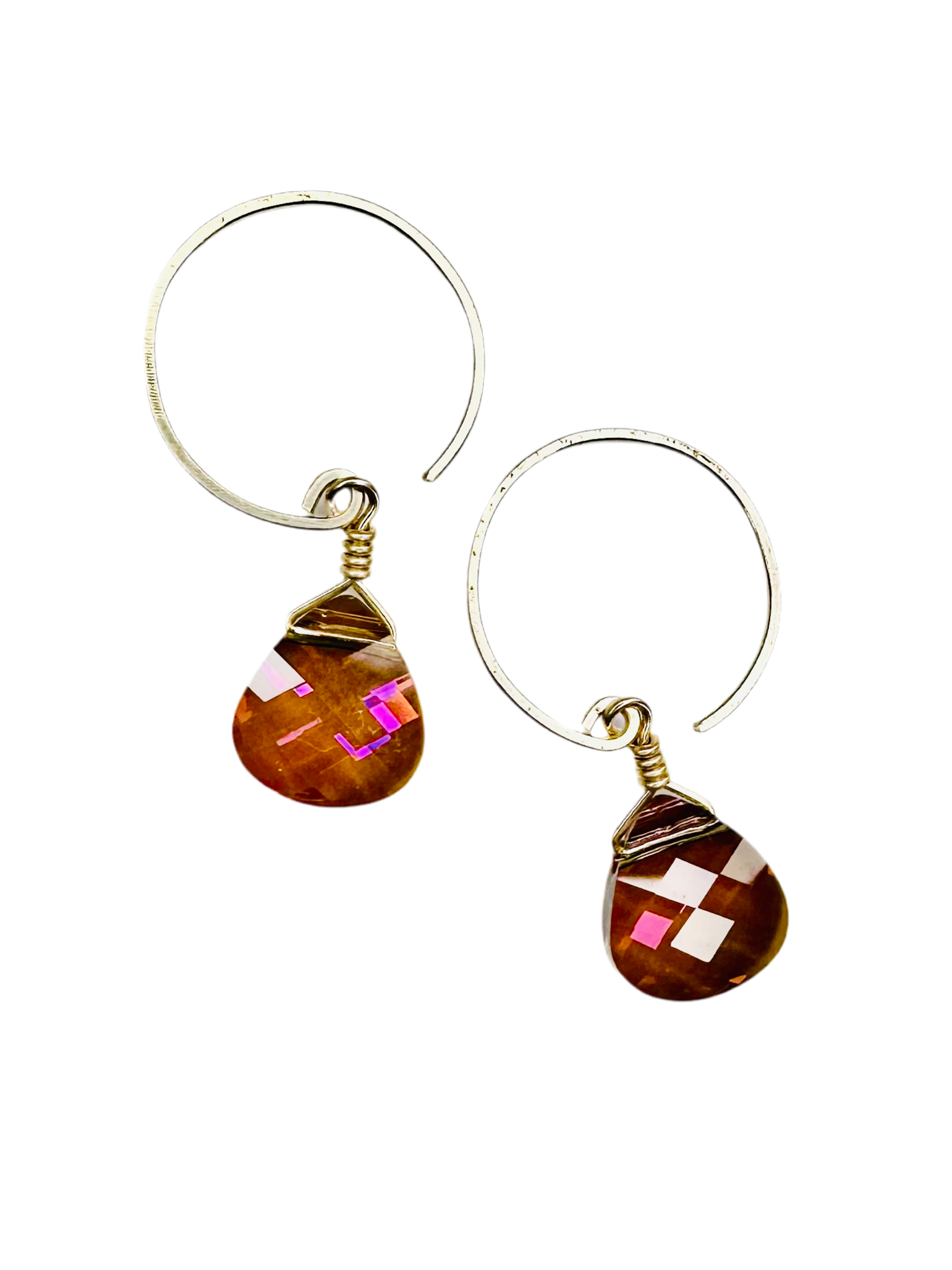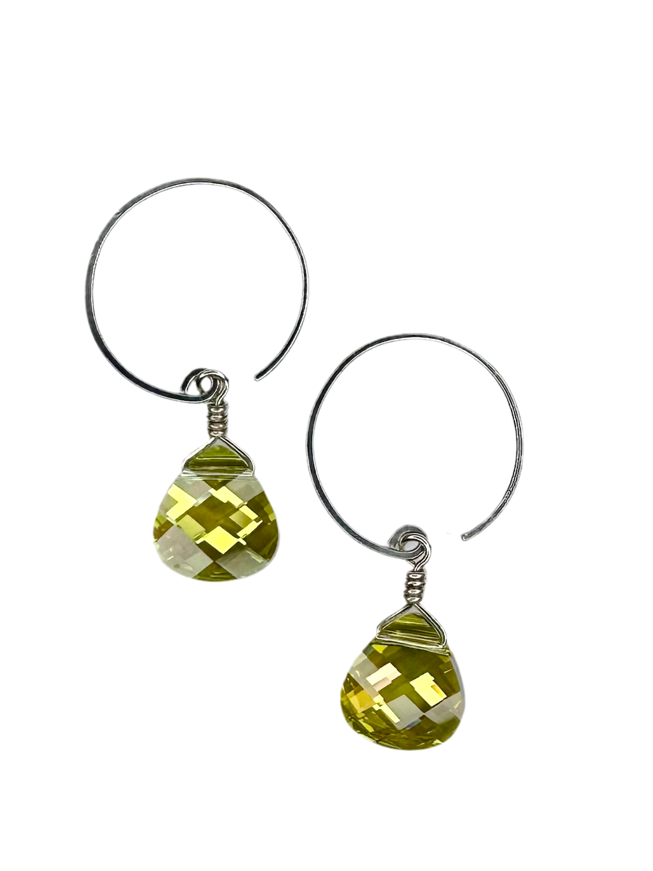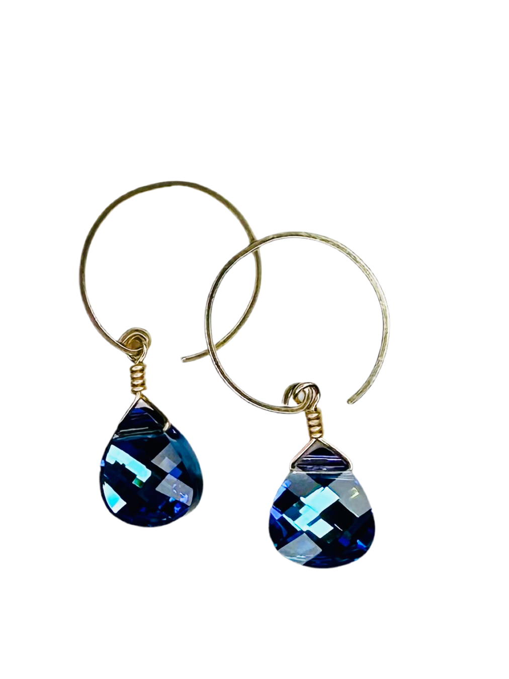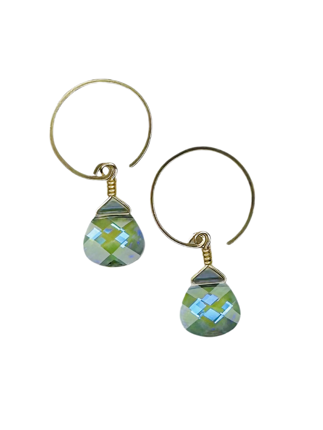 limited edition mini Swarovski briolette earrings. just a few of of our favorite colors. these sweet little Swarovskis hang from our smallest round hoop, so if you're looking for a smaller earring that isn't a stud, but has LOTS of sparkle - this ones for you!