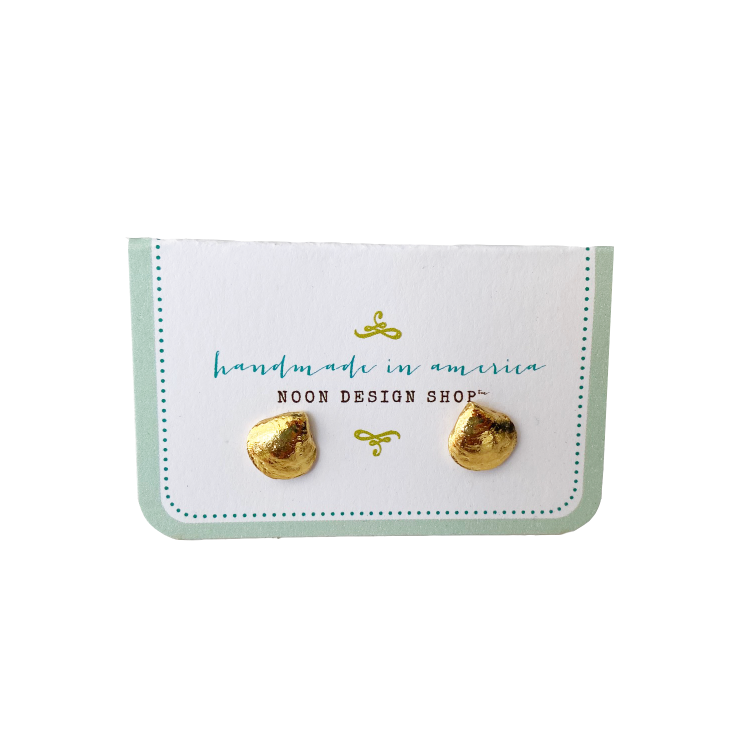 mini clam shell studs cast and crafted from shells we found beach combing our Rhode Island shores to carry a piece of the beach with you wherever you go!