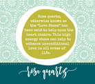 ROSE QUARTZ: Rose quartz, otherwise known as the “Love Stone” has been said to help open the heart chakra. This high energy stone can help to enhance unconditional love in all areas of life.
