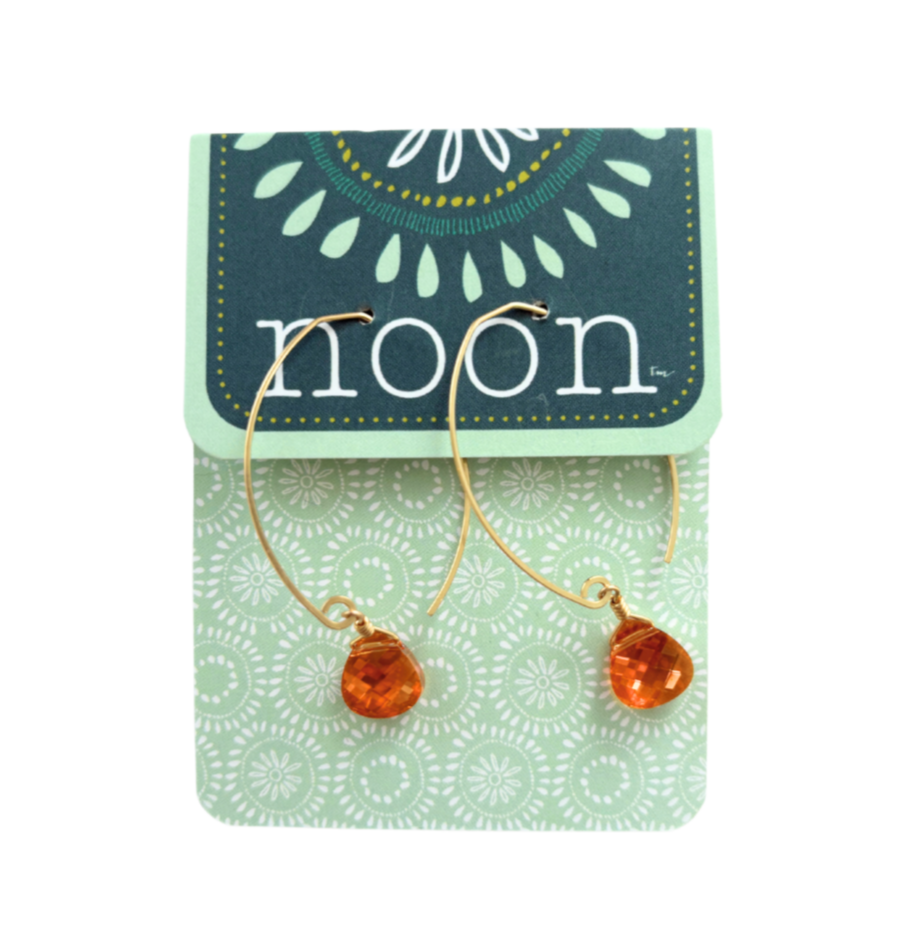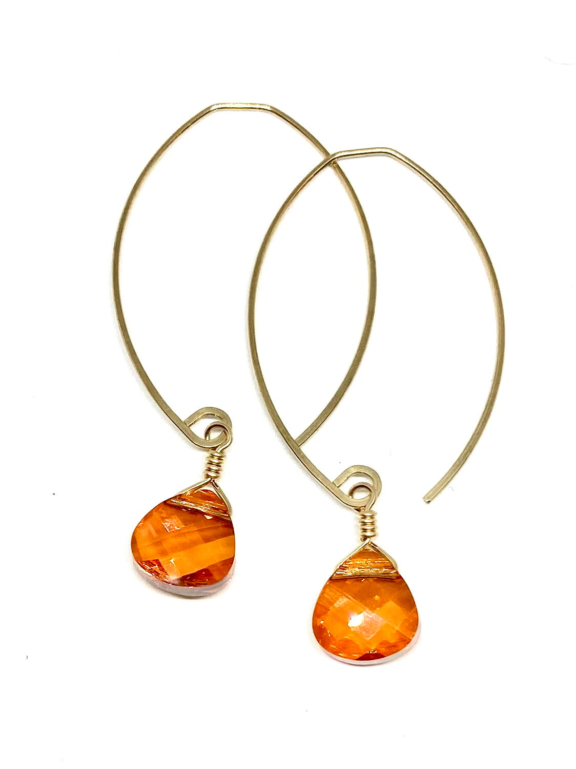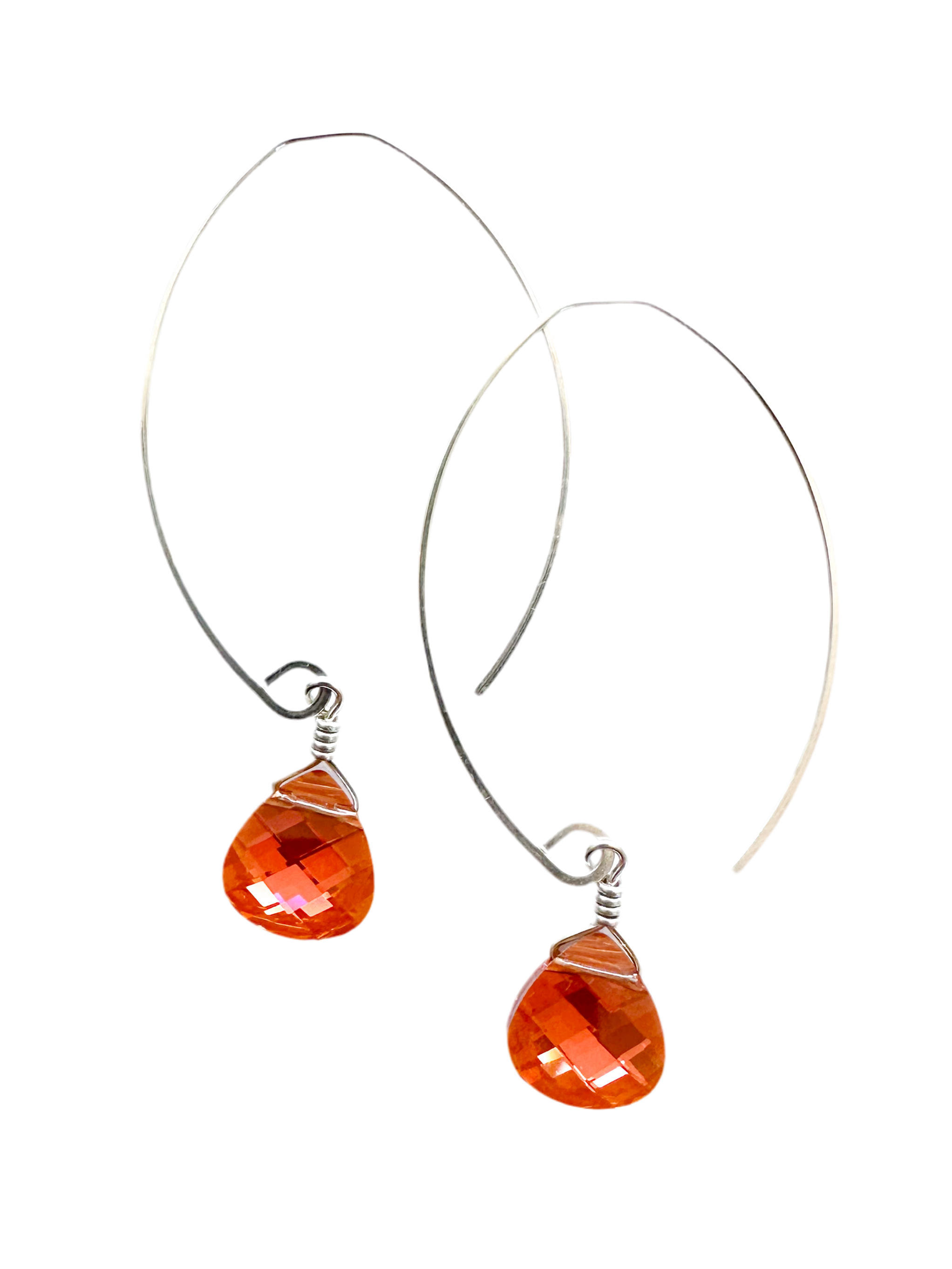 These swarovski briolette's hang off our medium size "mini" ear wire hoop. total length is 2" long.