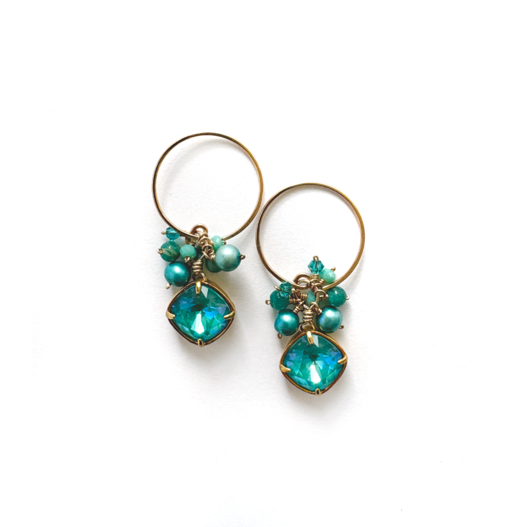 a slight twist to an old favorite the clusters. we swapped out the briolette crystals for these square cushion cut swarovskis.