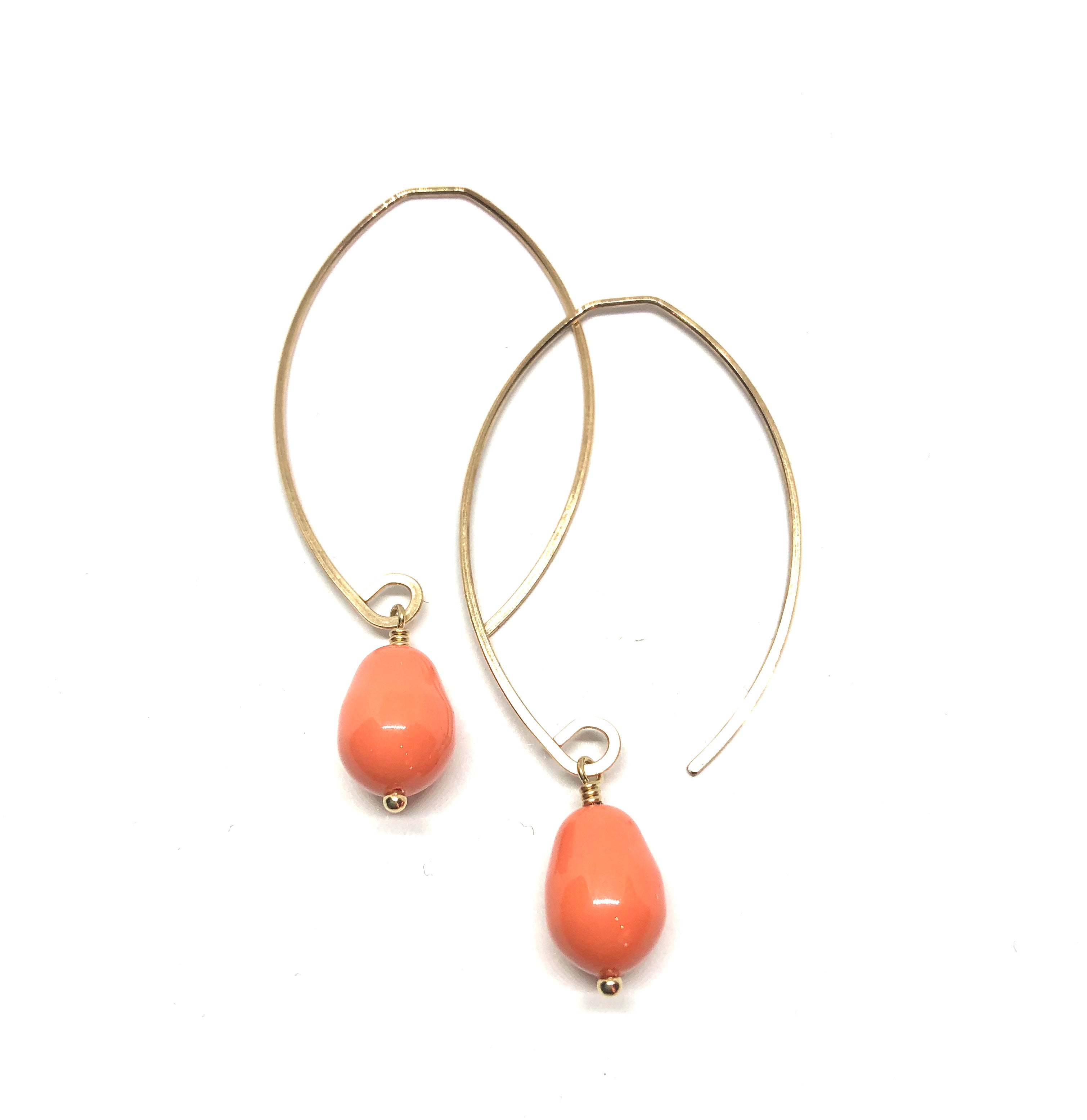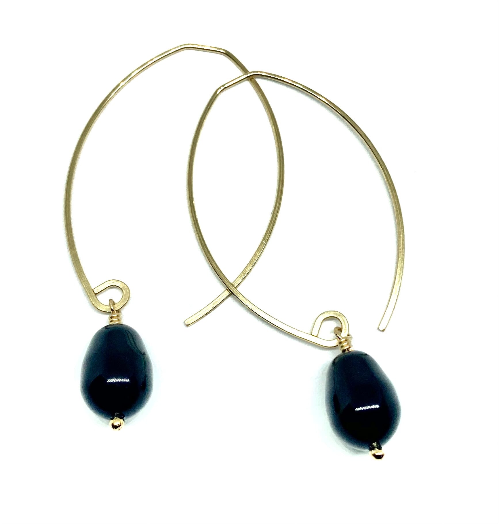simple and sweet these swarovski teardrop shaped pearls are a twist on the classic pearls. available in sterling silver or 14k gold fill. each drop pearl hangs on our "mini" frame earwire.