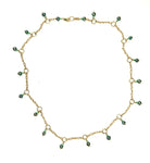 It brings us much joy to introduce this line of necklaces to the noon collection. Each link is hand wrapped connecting a closed jump ring which then is adorned with delicately wrapped gemstones. The simplicity and intricate detailing in these necklaces makes each of them a subtle, but stunning statement piece.