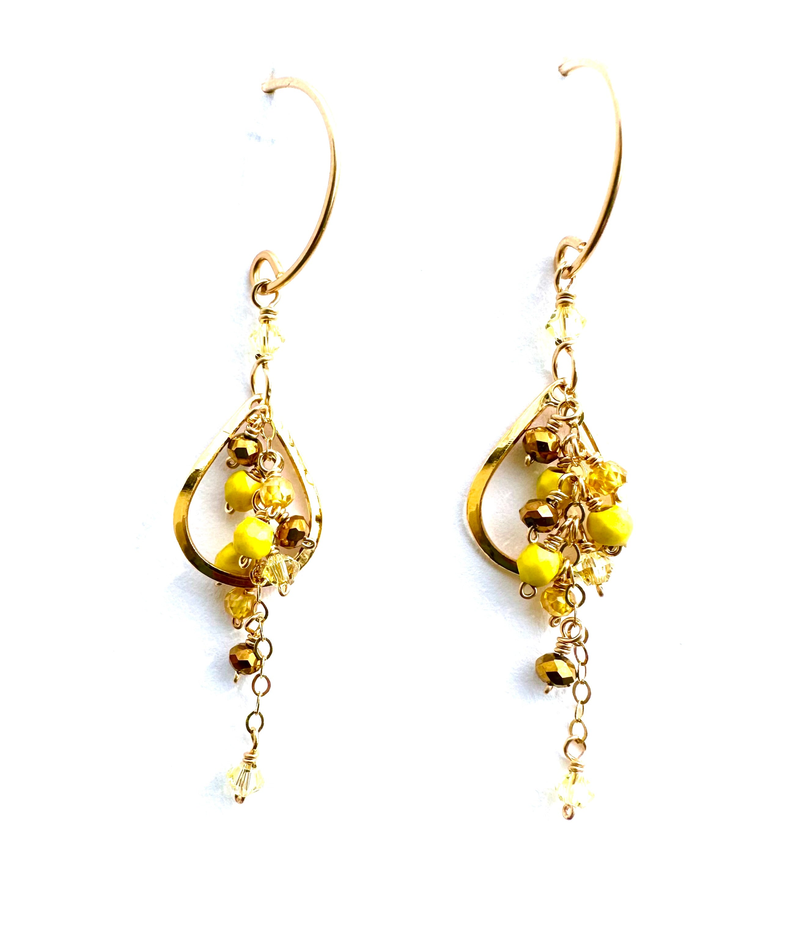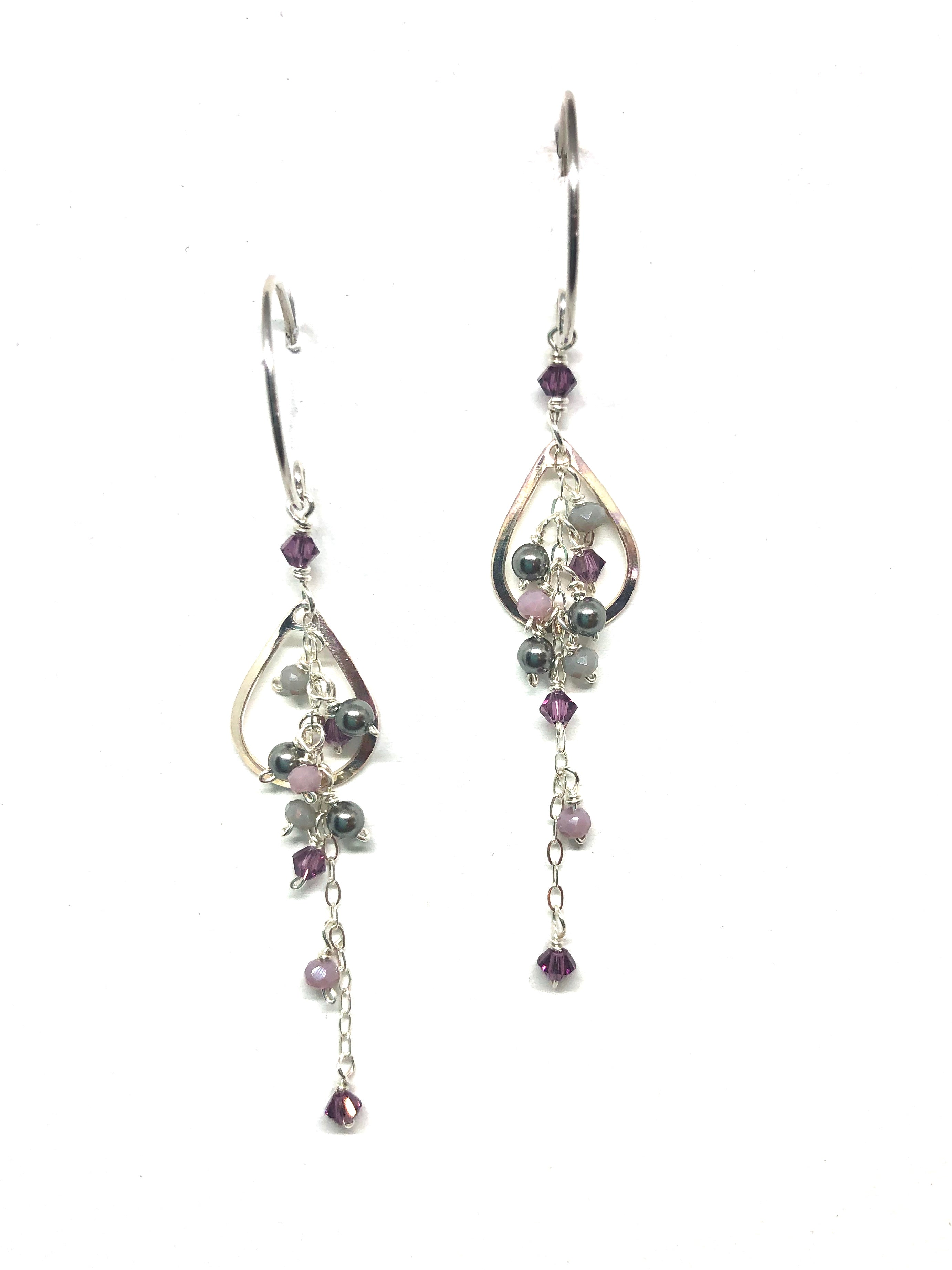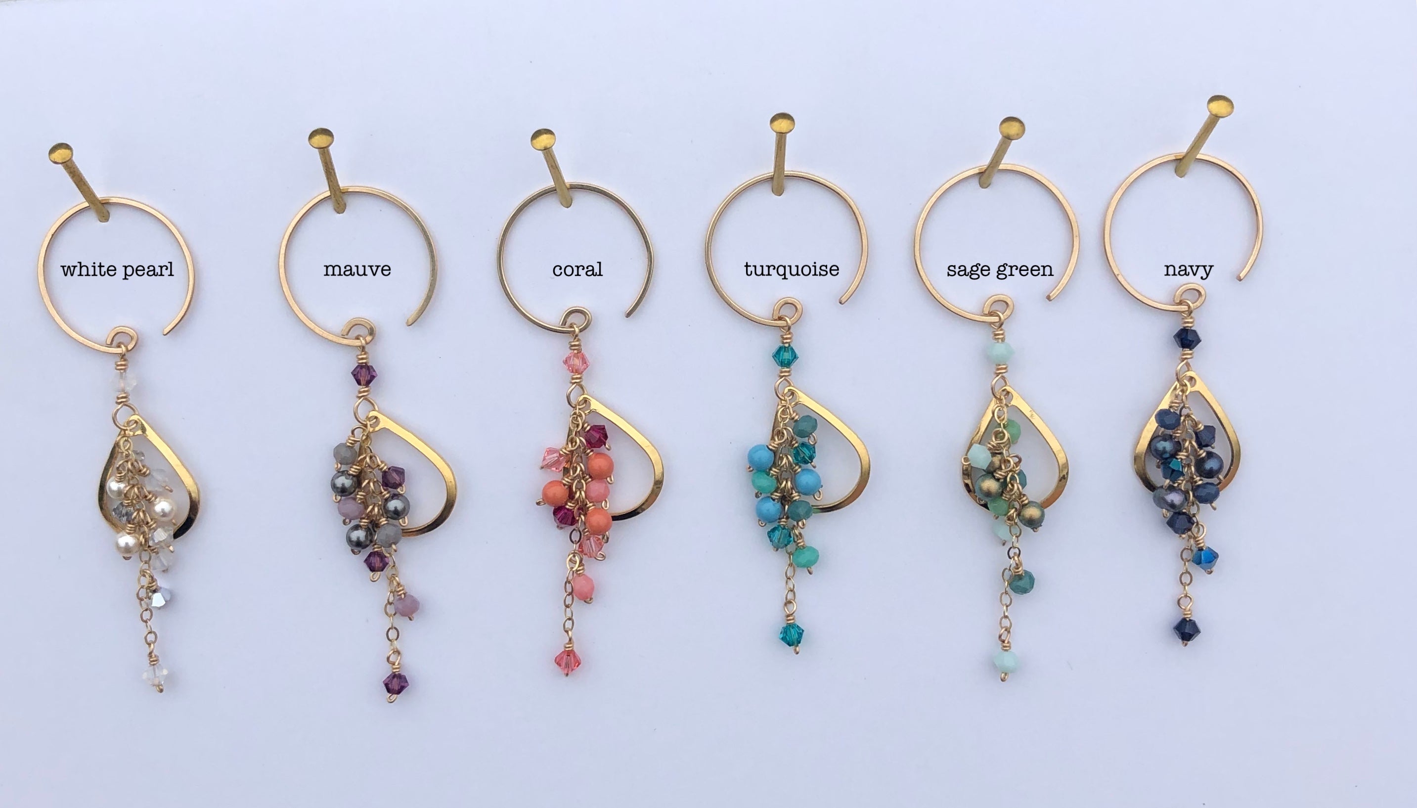 Delicately cascading like a vine, our Grecian Vine earrings bring an elegant yet whimsical touch to any outfit. Featuring luminous pearls and shimmering crystals, each earring is adorned with a teardrop shaped accent that enhances it graceful movement. Suspended from our signature round ear wires, available in gold fill or sterling. These earrings are very lightweight, sophisticated, and perfect of any occasion. Chose form one of our many color combinations.