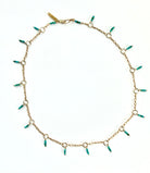 It brings us much joy to introduce this line of necklaces to the noon collection. each link is hand wrapped connecting a closed jump ring which then is adorned with delicately wrapped gemstones. The simplicity and intricate detailing in these necklaces makes each of them a subtle, but stunning statement piece.