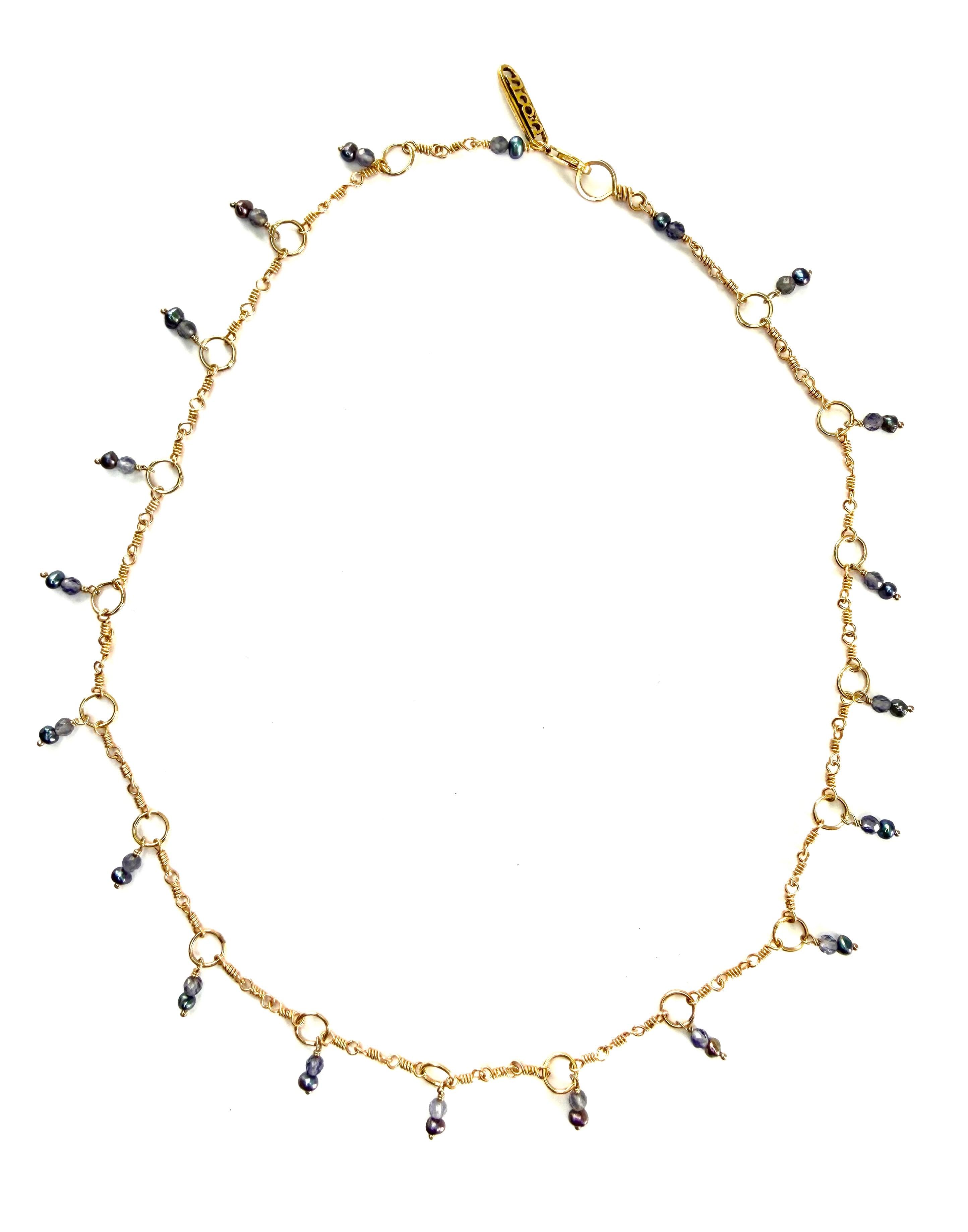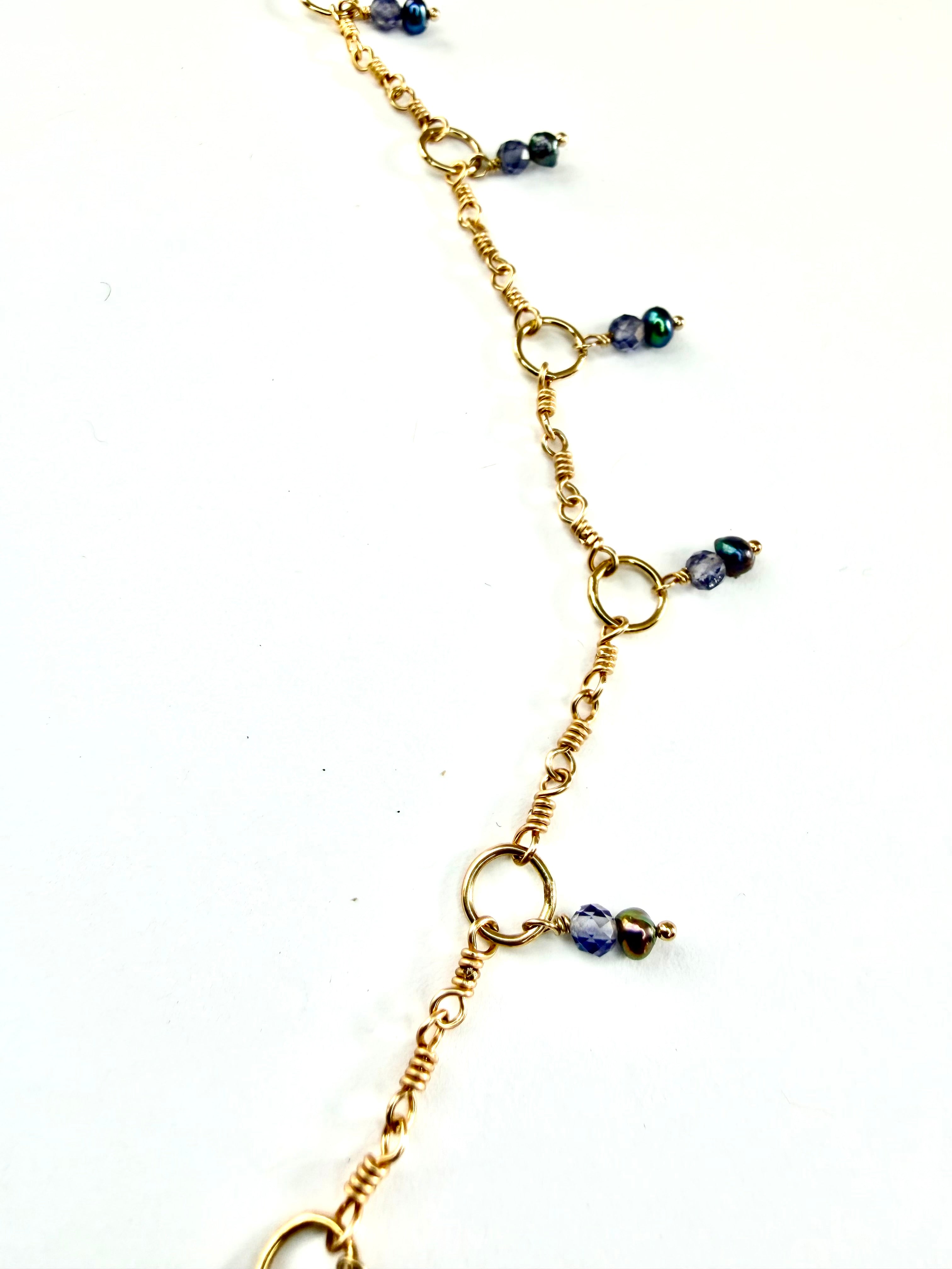 The necklace pictured below is a combination of faceted Iolite and gray fresh water pearl