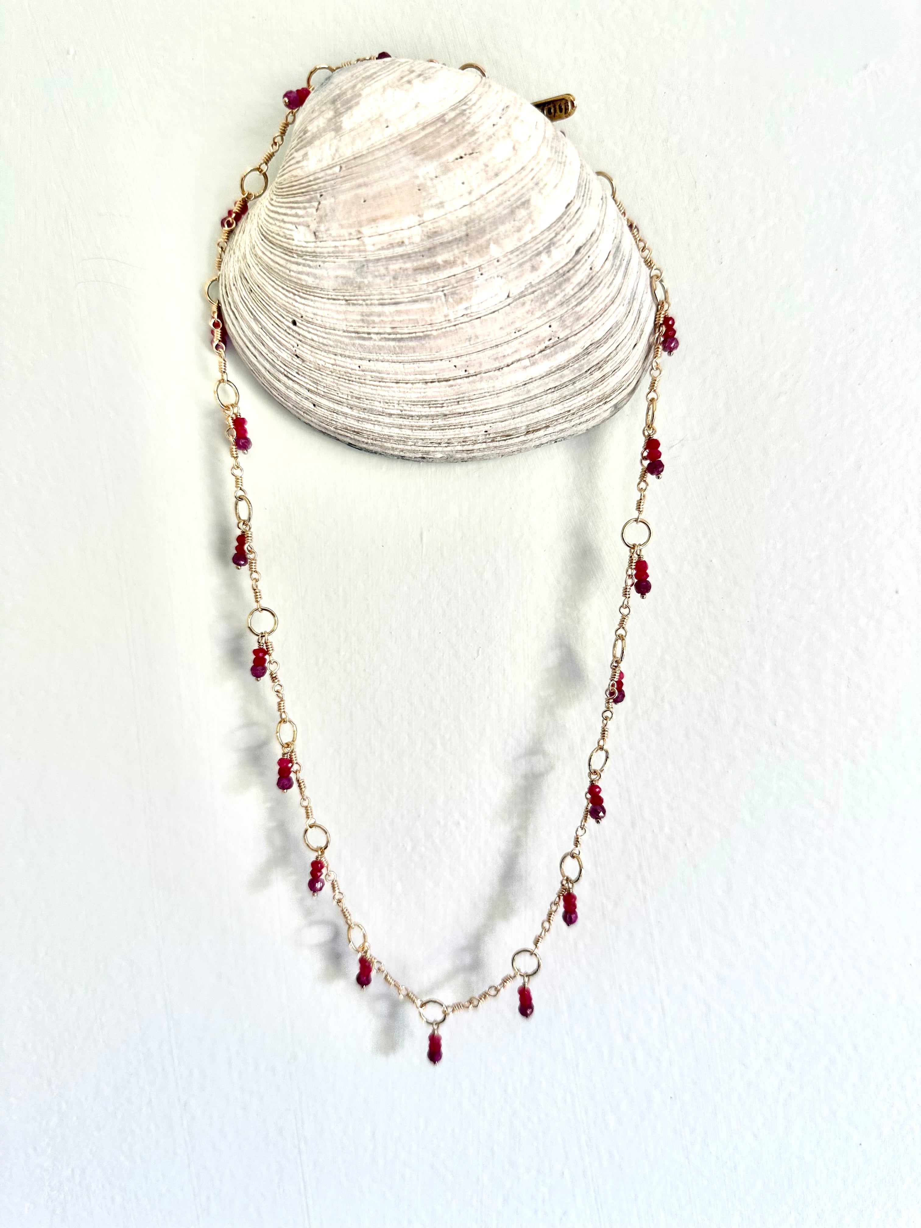 It brings me much joy to introduce this line of necklaces to the noon collection. each link is hand wrapped connecting a closed jump ring which then is adorned with a delicately wrapped gemstone. The simplicity and intricate detailing in these necklaces makes each of them a subtle, but stunning statement piece.