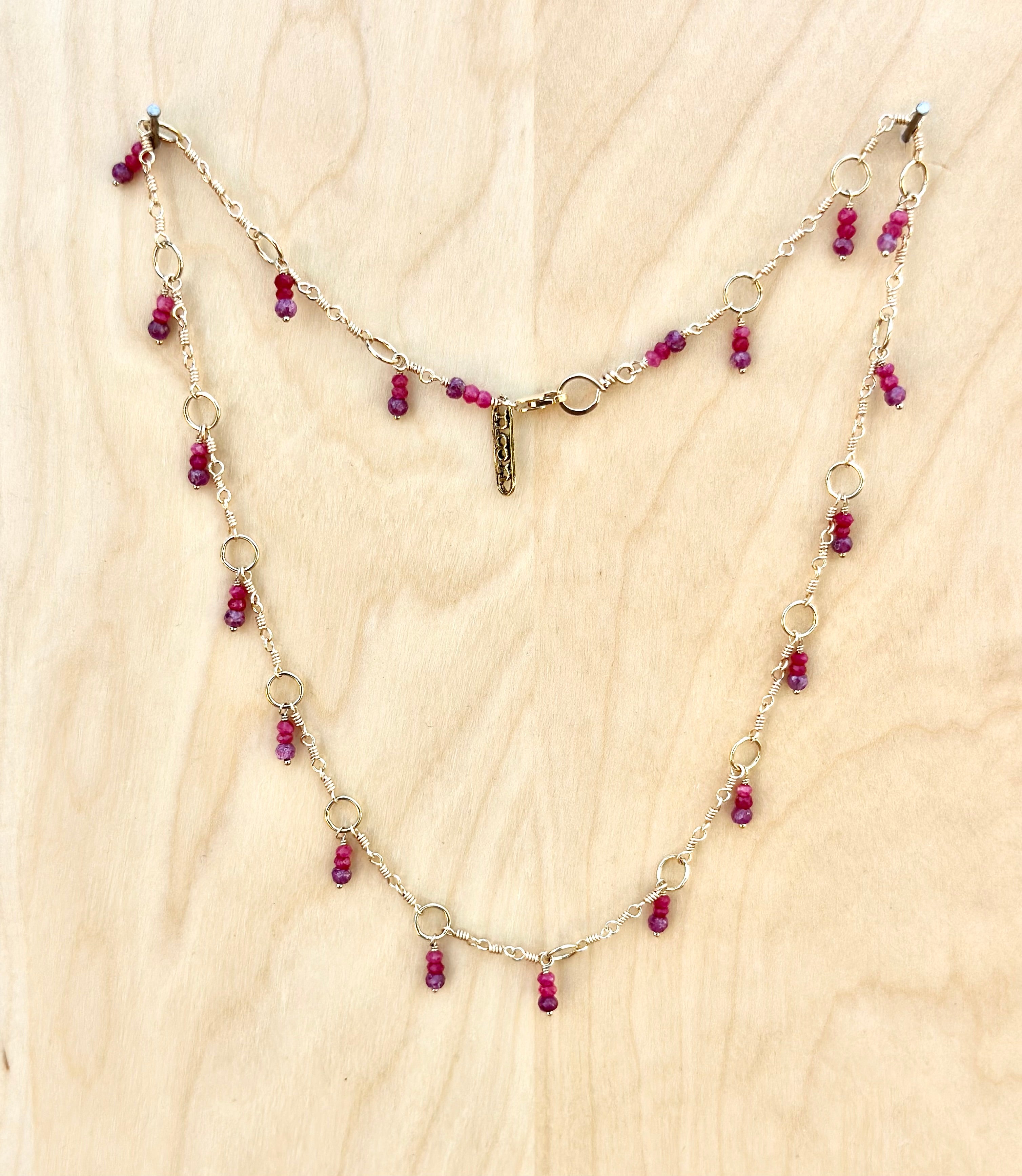This beauty pictured below is made entirely out of 14k gold fill wire light and dark faceted pink rubellite gemstones
