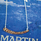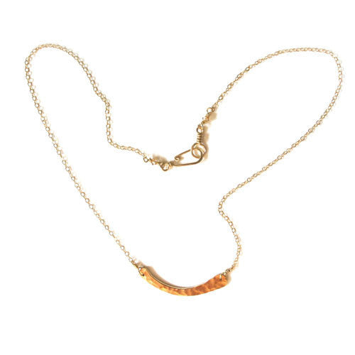 hand fabricated hammered "wishbone" is about 1.5" long and is attached to a fine sterling silver or 14k gold fill cable chain. total length is 17" long