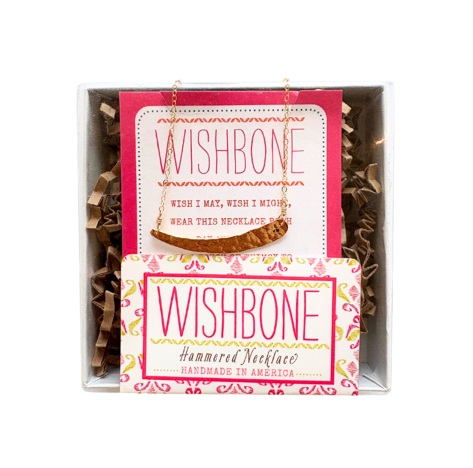 "wish i may, wish i might, wear this necklace both day and night! add o touch of whimsy to your look with this simple hammered wishbone. may all of your wishes come true!"