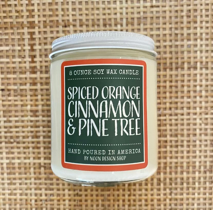 seasonal soy wax candle . spice orange, cinnamon + pine tree