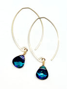 These swarovski briolette's hang off our medium size "mini" ear wire hoop. total length is 2" long.