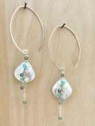 we love everything about these earrings. as if the mother of pearl core earrings weren't enough...we added a vine to them, and BAM.....perfection!!!! the subtle hints of sage, mint and sea foam against the shiny white shell is a show stopper for sure.